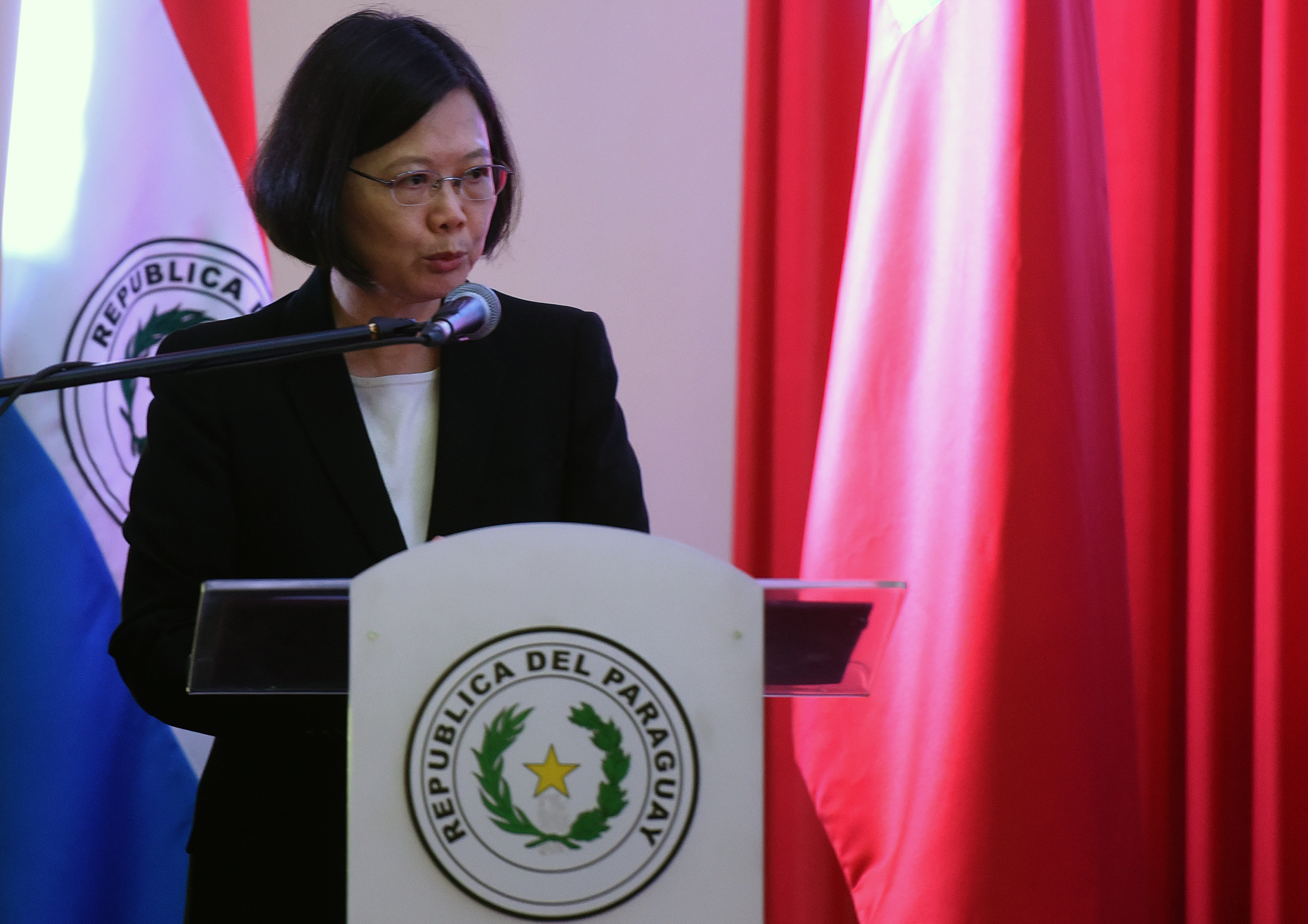 Taiwan’s new president is visiting Paraguay as part of her first overseas trip since taking office in May. / AFP PHOTO /