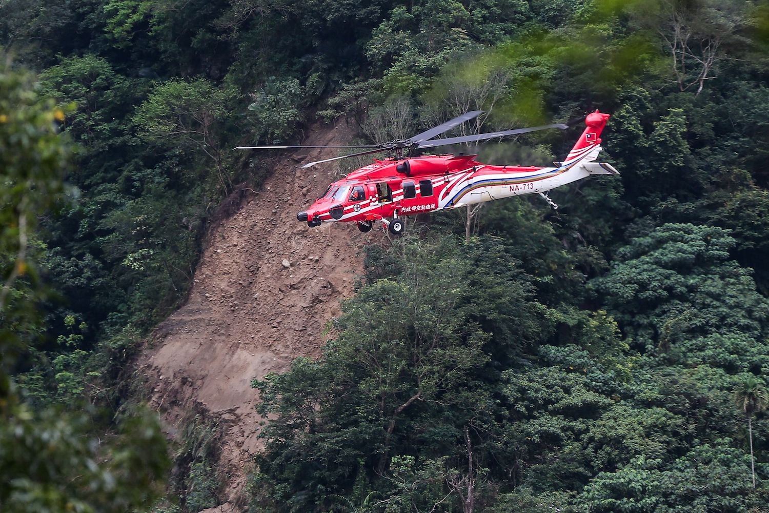 But helicopters from the National Airborne Service Corps were flying into cut-off areas near the scenic Taroko National Park to pluck stranded visitors to safety.