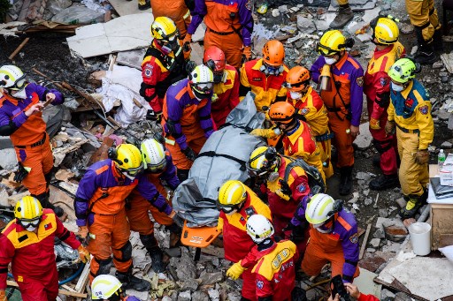 HUALIEN, Taiwan (AFP) — After hours of painstaking search efforts, Taiwanese rescue workers pulled two more bodies from the flattened remains of a hotel Friday, bringing the death toll from a deadly 6.4-magnitude quake to 12.