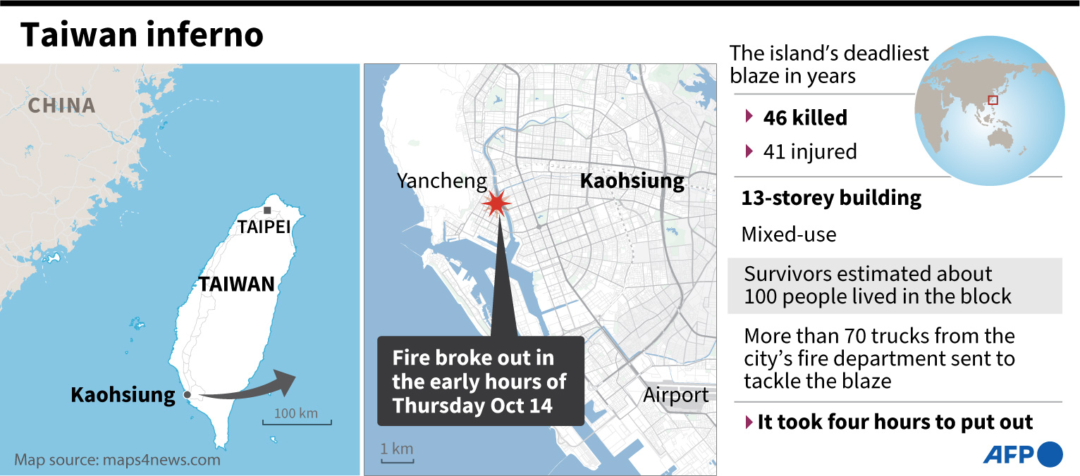 October’s inferno in the southern city of Kaohsiung raged through multiple floors of a dilapidated 13-storey apartment block for hours, killing 46 people.