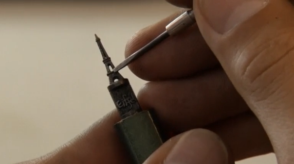 Each of the 26 letters is 0.1 millimeters long and measures 0.5 millimeters in height and width. Carving one letter took Lee 40 minutes to complete.