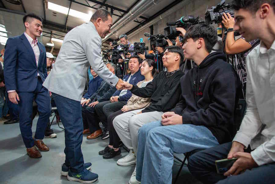 Hou Yu-ih, Taiwanese presidential candidate from the main opposition party Kuomintang (KMT), shakes hands with attendees during a meeting with young people in Taipei on November 17, 2023. (Photo by Sam Yeh / AFP)