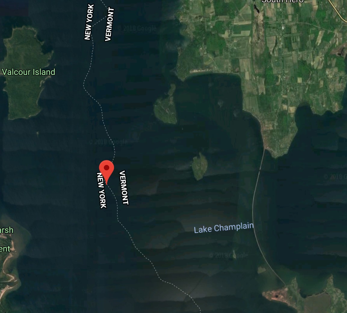 The vehicle initially slid, but the ice on the surface of Lake Champlain quickly cracked and the Jeep sank.