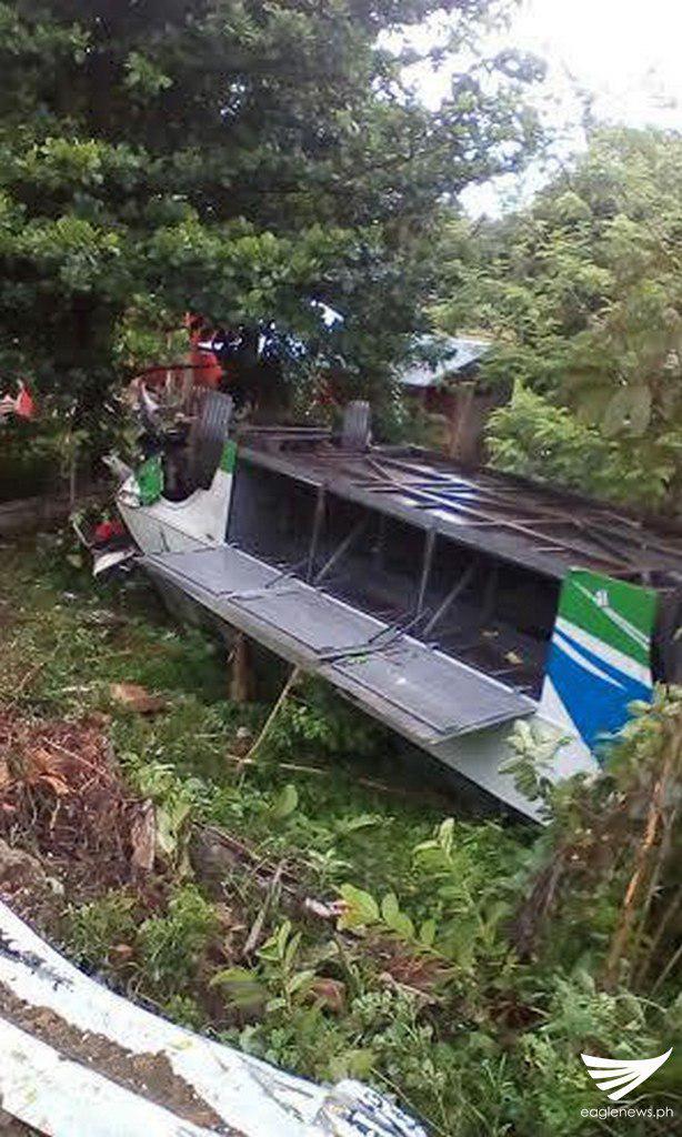 Sa lakas ng impact ay nahulog ang pampasaherong bus sa bangin.