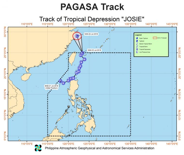 As of 7 a.m. on Monday, July 23, “Josie” was estimated to be 585 kilometers north northeast of Basco, Batanes which is already outside the country.