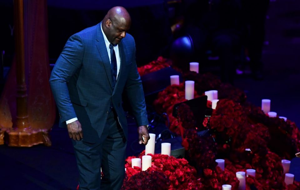 Another basketball legend, Shaquille O’Neal, also spoke at the ceremony, drawing cheers as he recalled the three NBA titles that he and Bryant won together.