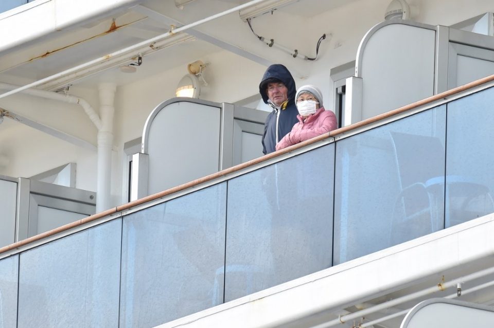 As the massive cruise ship docked, passengers who have been told they may have to stay aboard for 14 days even if they test negative for the virus, came out onto balconies, some waving to assembled media or taking pictures.