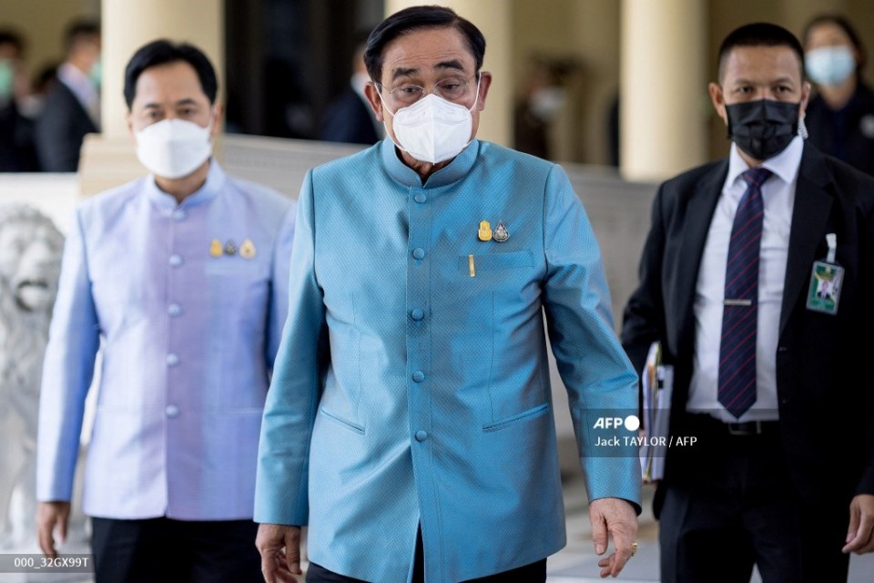 Thailand’s Prime Minister Prayut Chan-O-Cha (C) leaves after his weekly cabinet meeting at the Government House in Bangkok on August 23, 2022. (Photo by Jack TAYLOR / AFP)