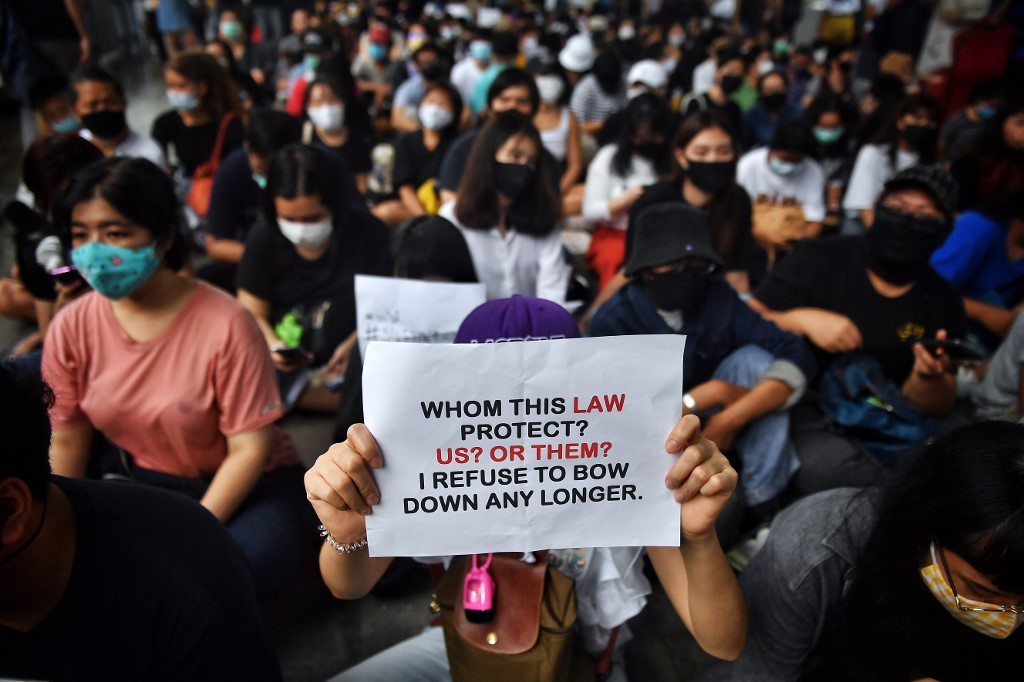 So far, none of the pro-democracy activists have been charged with royal defamation, but their demands have angered pro-royalist supporters and spurred several smaller counter-protests.