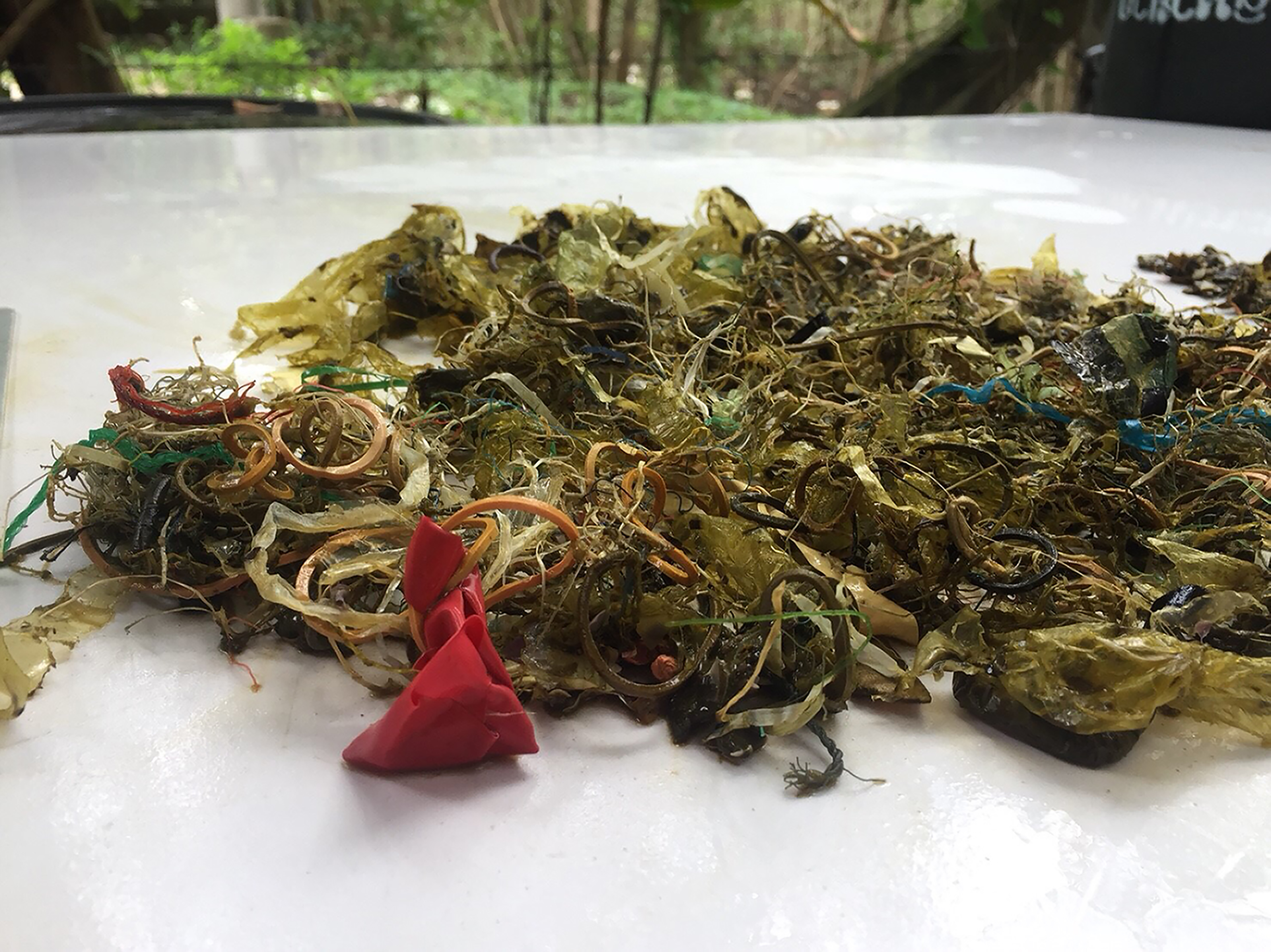 Plastic, rubber bands, pieces of balloon and other rubbish had filled the turtle’s intestinal tract, leaving it unable to eat and causing its death two days later.