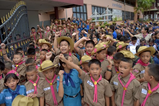Their teacher led them in a chant thanking “everyone who came to help make the mission succeed,” in a small reflection of a wider gratitude towards the foreign experts who helped extract the stricken group.