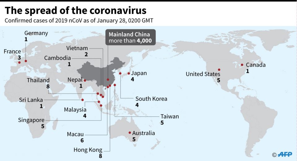 Five cases have been confirmed in Australia — all of whom arrived in the country from Wuhan. The patients are being treated in hospitals in Sydney and Melbourne.