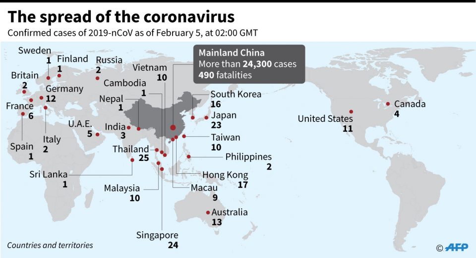 BEIJING, China (AFP) — The new coronavirus that emerged in a Chinese market at the end of last year has killed at least 490 people and spread around the world.