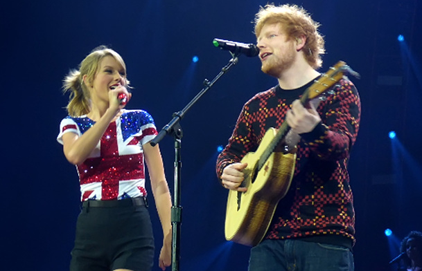 Ed Sheeran’s popularity abroad began in 2012. In the US he made a guest appearance on Taylor Swift’s fourth studio album, Red, and wrote songs for One Direction. “The A Team” was nominated for Song of the Year at the 2013 Grammy Awards and he performed the song in duet with Elton John during the ceremony. He spent much of 2013 touring North America as the opening act for Swift’s The Red Tour. In autumn 2013, Sheeran performed three sold-out shows at New York’s Madison Square Garden as a headline act. His second studio album x (read as “multiply”) was released worldwide on 23 June 2014, charting at number one in the UK Albums Chart and the US Billboard 200. In 2015, x won the Brit Award for British Album of the Year, and was nominated for Album of the Year at the 57th Annual Grammy Awards. He received the Ivor Novello Award for Songwriter of the Year in 2015. As part of his x world tour, Sheeran played three sold-out concerts at London’s Wembley Stadium in July 2015, his biggest solo shows to date.