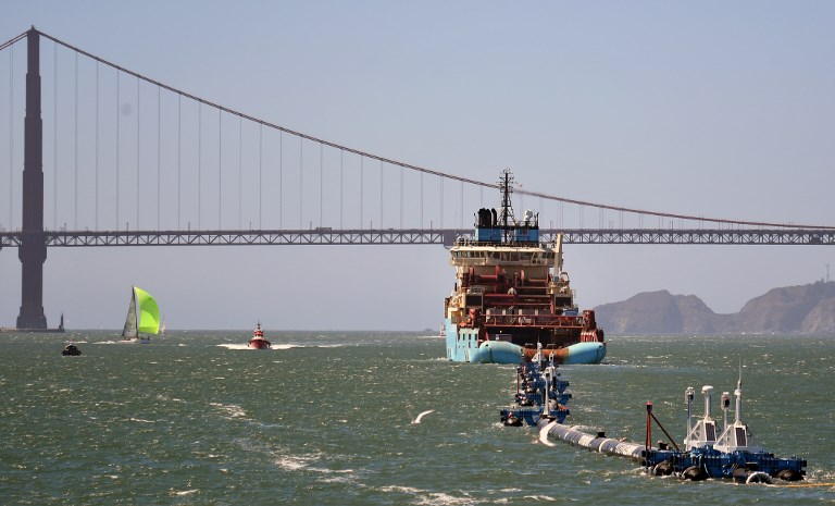 SAN FRANCISCO, United States (AFP) — A supply ship towing a long floating boom designed to corral ocean plastic has set sail from San Francisco for a test run ahead of a trip to the Great Pacific Garbage Patch.