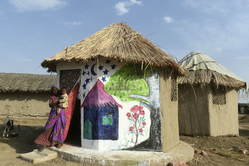 Known locally as “chanwara”, the mud huts are an improved take on the traditional single-room houses dotted along the landscape of southern Sindh province and Rajasthan state in India.