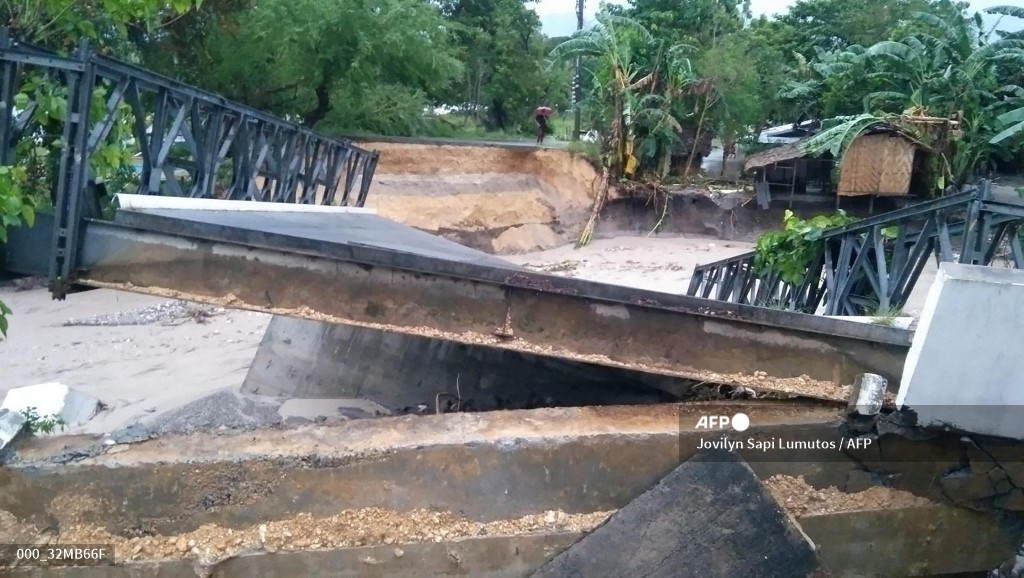 Provincial police posted on their official Facebook page photos of the shell of a house swept to the bank of a swollen river, a toppled steel fence flanked by debris and a rock-strewn road.