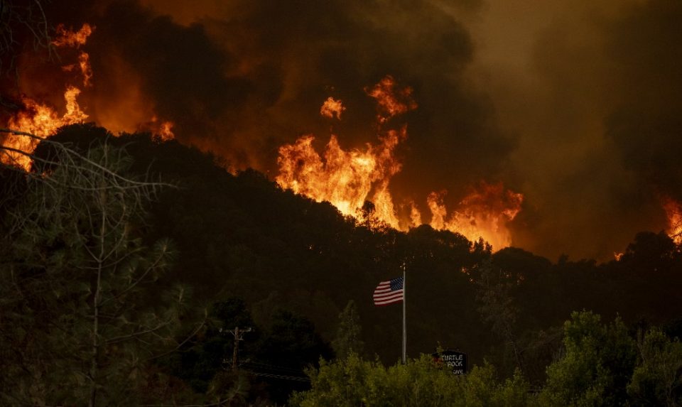 LOS ANGELES, United States (AFP) — Thousands of residents fled a city in northern California on Wednesday as a series of fast-moving wildfires spread across the state, burning dozens of homes and structures.