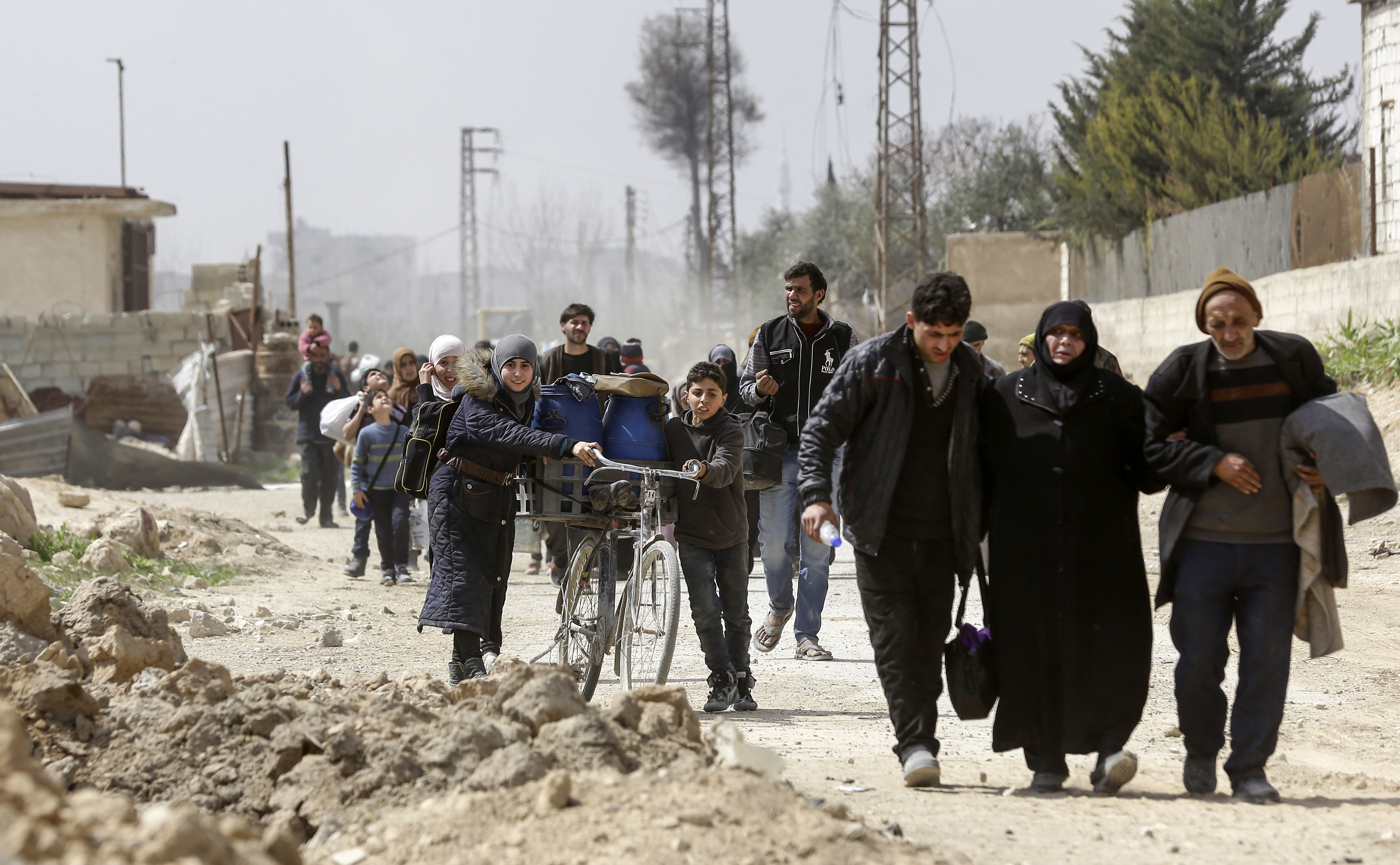 ADRA, Syria – Thousands of civilians poured out of Eastern Ghouta on Thursday after a month-long bombardment brought the Syrian regime closer to recapturing the devastated rebel enclave outside Damascus.