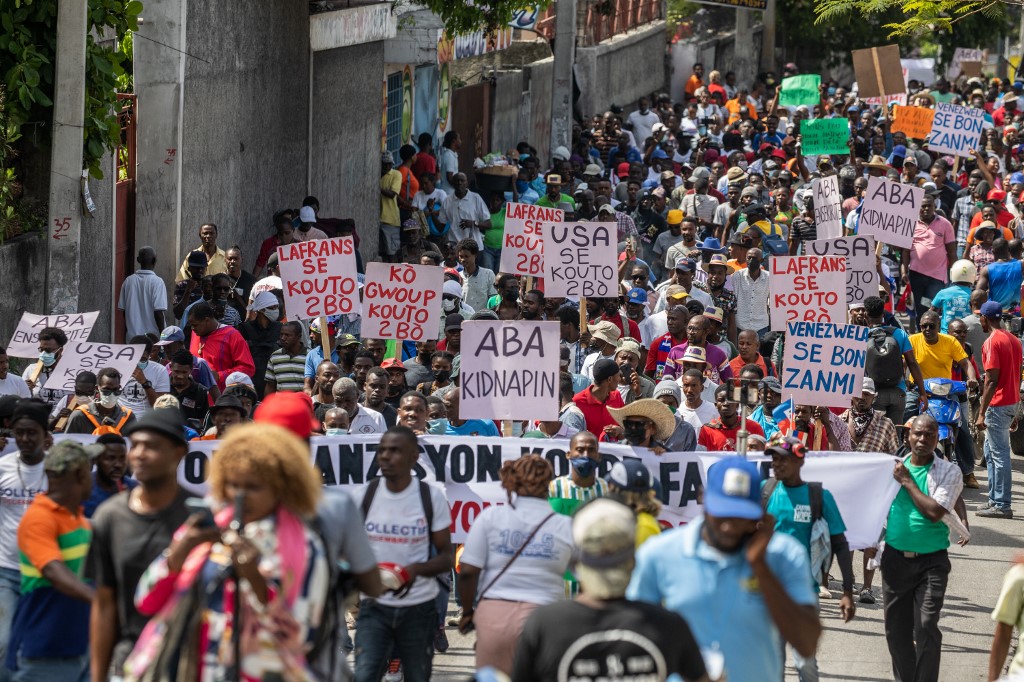 In Port-au-Prince, a large demonstration wound peacefully through the city for more three hours under police guard, chanting slogans against both the government and the police, whose officers have often been accused of failing to stand up to the armed gangs.