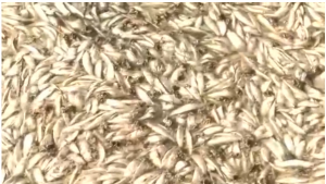 Television news footage showed masses of the lifeless silver fish more than a foot deep choking the waters in and around the river shores and boats.