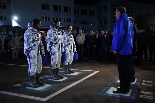 BAIKONUR, Kazakhstan (AFP) — Two US astronauts and a Russian cosmonaut blasted off for the International Space Station in a nighttime launch from the Baikonur cosmodrome in Kazakhstan early Wednesday, heading for a five-month mission.