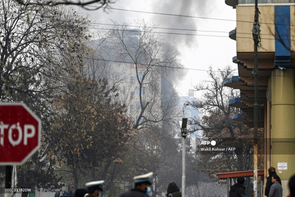 Smoke could be seen pouring from the multi-storey Kabul Longan Hotel as Taliban security forces rushed to the site and sealed off the neighbourhood.