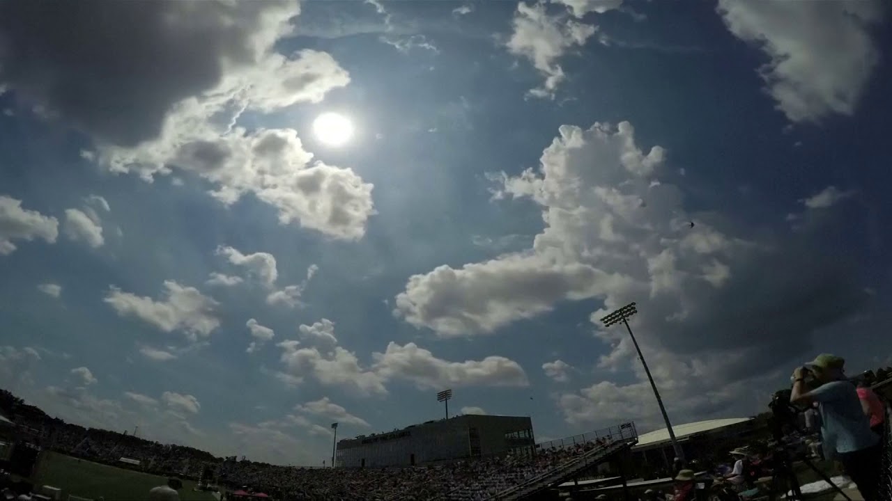 The video shows what was visible to the naked eye during the eclipse, as clouds passed through the skies over the Southern Illinois University football stadium.