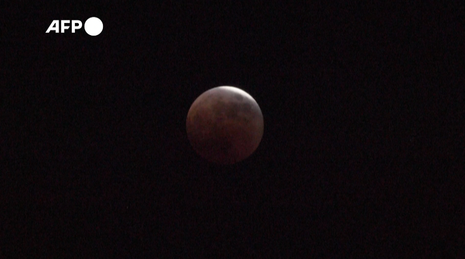 Tokyo residents gather on the roof tops of the city’s high-rise buildings to see the ‘blood moon’ eclipse in the clear night sky.
