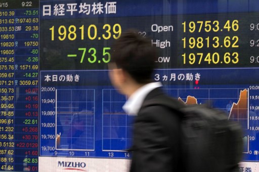 The benchmark Nikkei 225 index fell 0.63 percent, or 127.00 points, to 19,991.86 by the break, falling below the key 20,000 level, while the Topix index of all first-section issues was down 0.56 percent, or 9.14 points, to stand at 1,616.34.