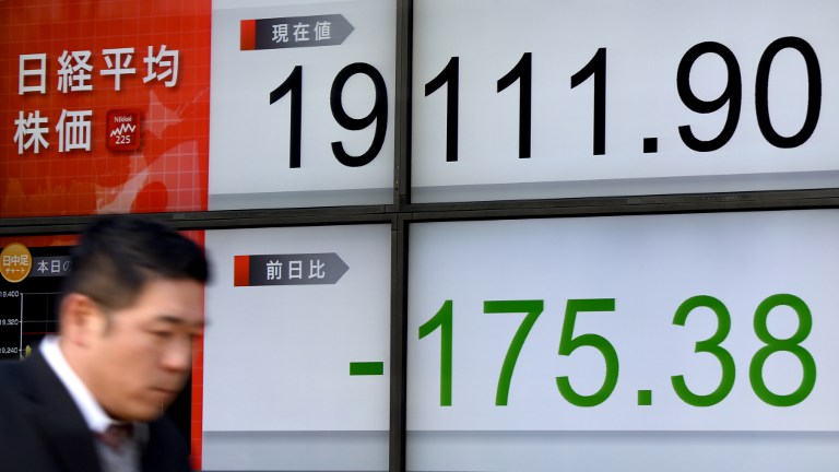 At the lunch break, Tokyo’s benchmark Nikkei index was down 0.91 percent, or 175.38 points, at 19,111.90, while the broader Topix index of all first-section issues was down 0.84 percent, or 12.95 points, at 1,531.94.