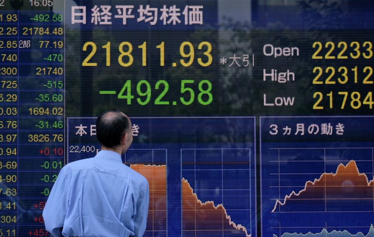 In New York, the Dow closed down 0.5 percent at 24,172.82 while the tech-rich Nasdaq fell 0.9 percent to 7,502.67.