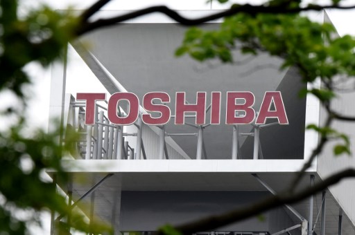 Toshiba said on September 20, 2017 it would sell its memory chip business to a group led by US investor Bain Capital, in a deal worth around 18 billion USD and seen as crucial to keeping the Japanese conglomerate afloat. / AFP PHOTO / Toru YAMANAKA