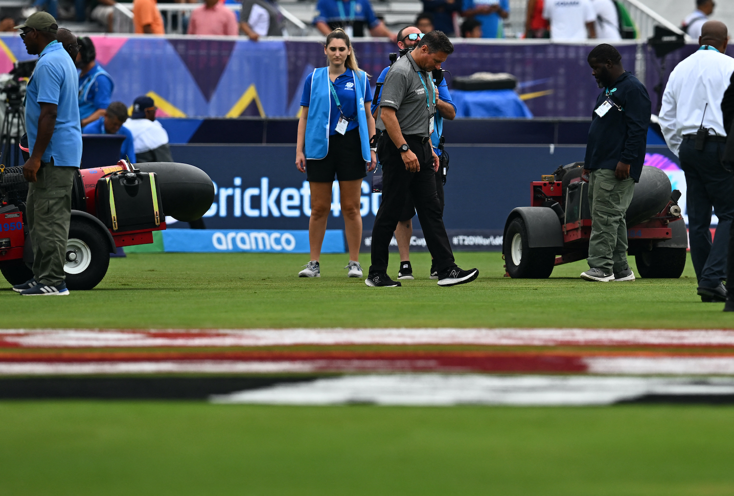 Umpires will carry out an inspection of the field at 10:30 am local (1430 GMT) which was scheduled to be the start time for the Group A game.