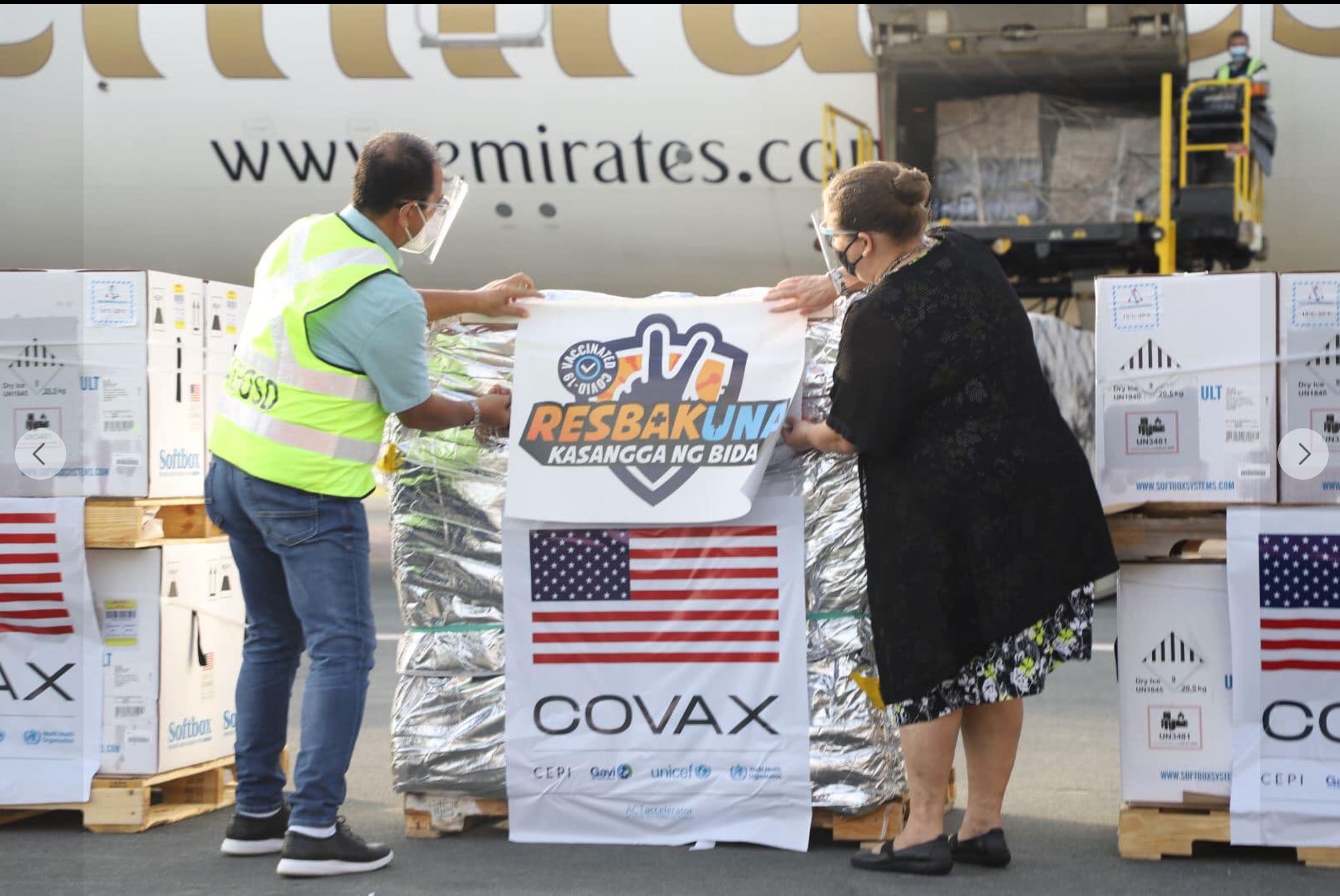 The 918,450 Pfizer doses shipment that arrived on Sunday is part of the 1.8 million total doses committed to the Philippines from the US government donation through COVAX Facility. T