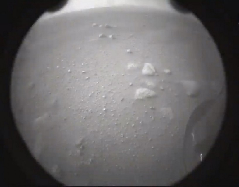 This NASA photo shows the first images from NASA’s Perseverance rover as it landed on the surface of Mars on February 18, 2021. – NASA said February 18, 2021 that the Perseverance rover has touched down on the surface of Mars after successfully overcoming a risky landing phase known as the “seven minutes of terror.” “Touchdown confirmed,” said operations lead Swati Mohan at around 3:55 pm Eastern Time (2055 GMT) as mission control at NASA’s Jet Propulsion Laboratory headquarters erupted in cheers. The autonomously-guided procedure was completed more than 11 minutes earlier, which is how long it takes for radio signals to return to Earth. (Photo by Handout / NASA / AFP) / RESTRICTED TO EDITORIAL USE