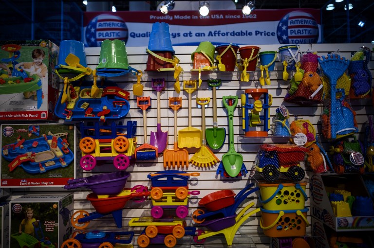 Toys of the company American Plastic Toys Inc are on display during the annual New York Toy Fair, at the Jacob K. Javits Convention Center on February 16 in New York City. (Photo by Johannes EISELE / AFP)