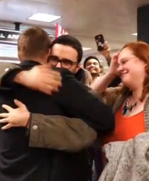 (Reuters) — Travellers were greeted with hugs and tears by family and friends at Washington Dulles Airport in Virginia late on Saturday (January 28) after being detained for hours because they were arriving on flights from one of the seven predominantly-Muslim countries that U.S. President Donald Trump has put on a restricted arrivals list.