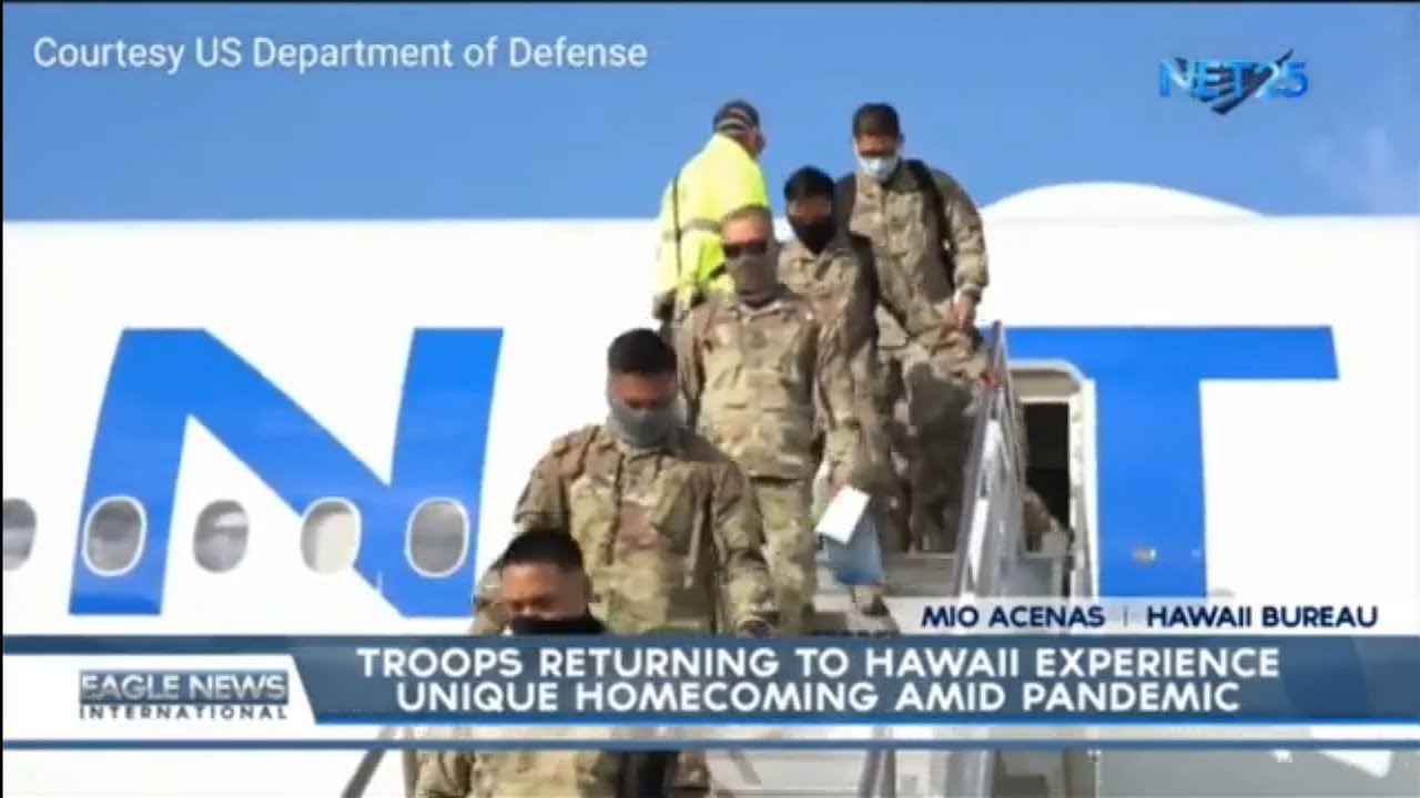 Soldiers arrived at Honolulu International Airport after being quarantined in Texas for a few days to screen soldiers for COVID-19. Once touched down in the Aloha state, the homecoming was different from what these soldiers are used to.