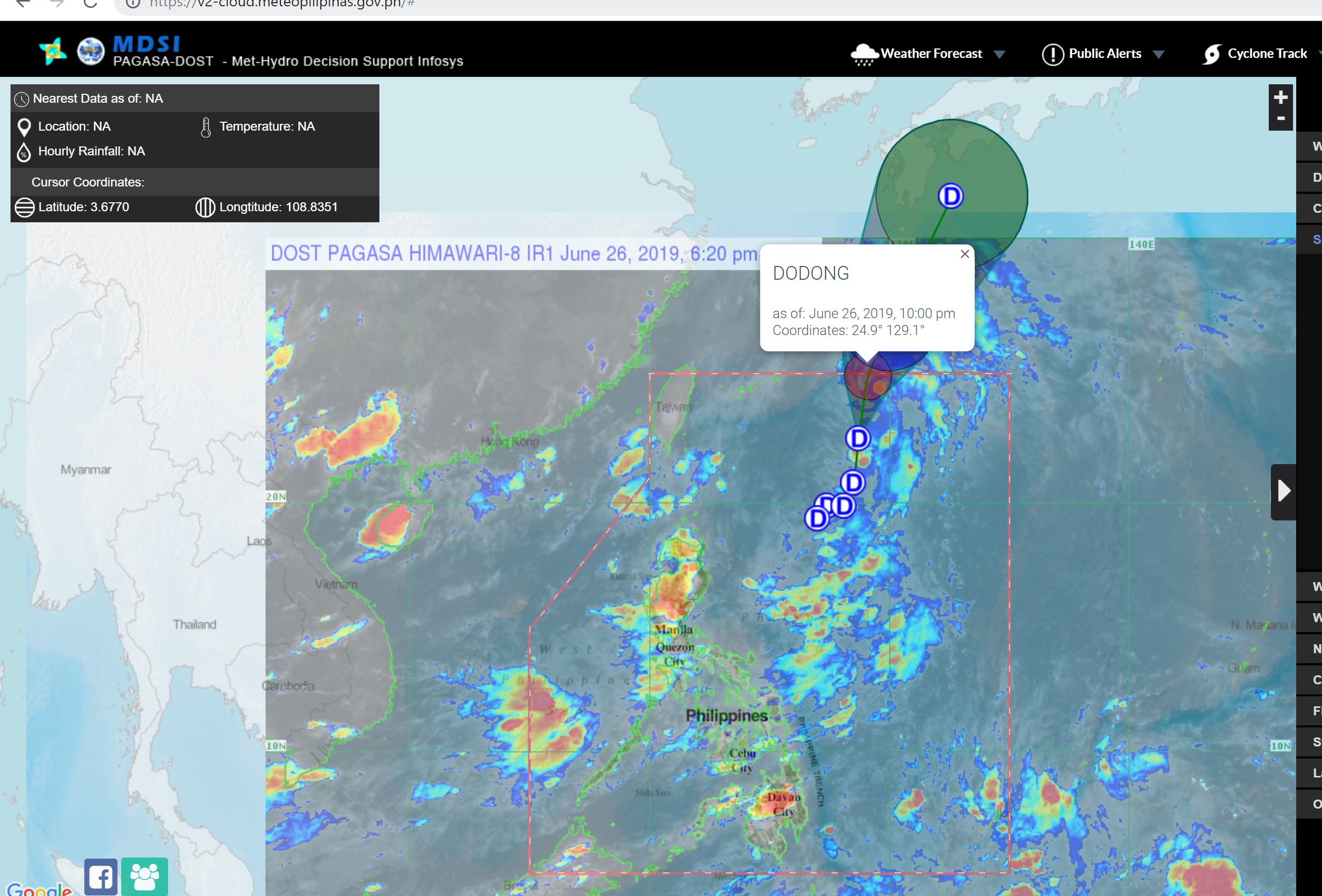 (Eagle News) — Tropical Depression Dodong has “slightly accelerated” while moving north-northeastward, and is expected to exit the Philippine Area of Responsibility (PAR) tonight, Wednesday, June 26.