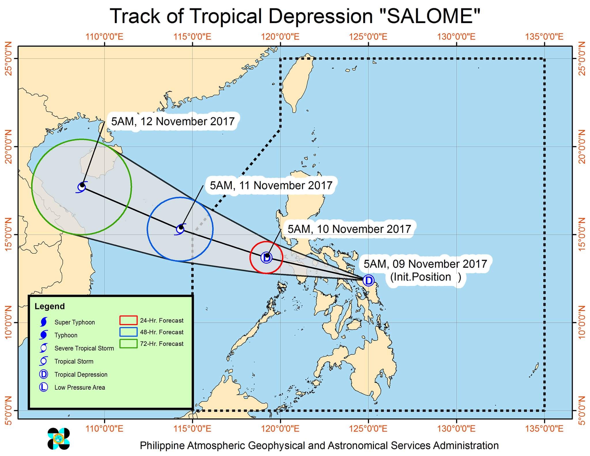 In its 11 a.m. advisory, the Philippine Atmospheric, Geophysical and Astronomical Services Administration said there will be moderate to heavy rainfall within the 250-kilometer diameter of “Salome.”