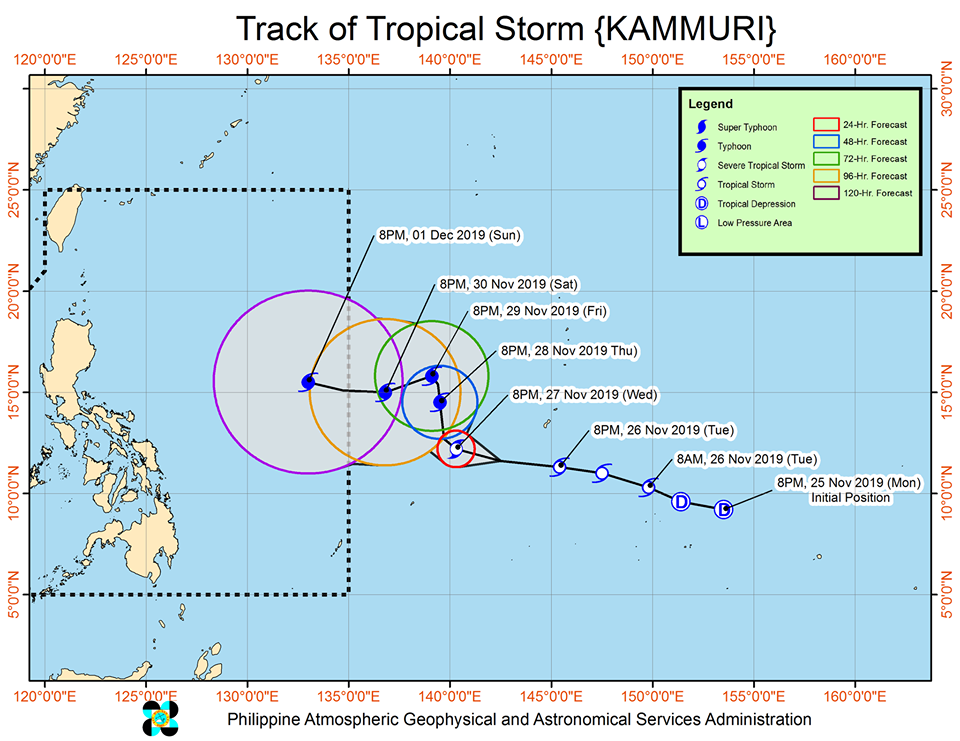 (Eagle News) — Tropical Storm “Kammuri” is forecast to enter the Philippine Area of Responsibility between Saturday, Nov. 30, and Sunday, Dec. 1.