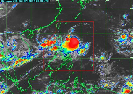As of 3 a.m. today, Thursday, July 27, the center of Tropical Storm “Gorio” (Nesat) was estimated based on all available data at 595 kilometers east northeast of Casiguran, Aurora with maximum sustained winds of 85 kilometers per hour near the center and gustiness of up to 105 kph.