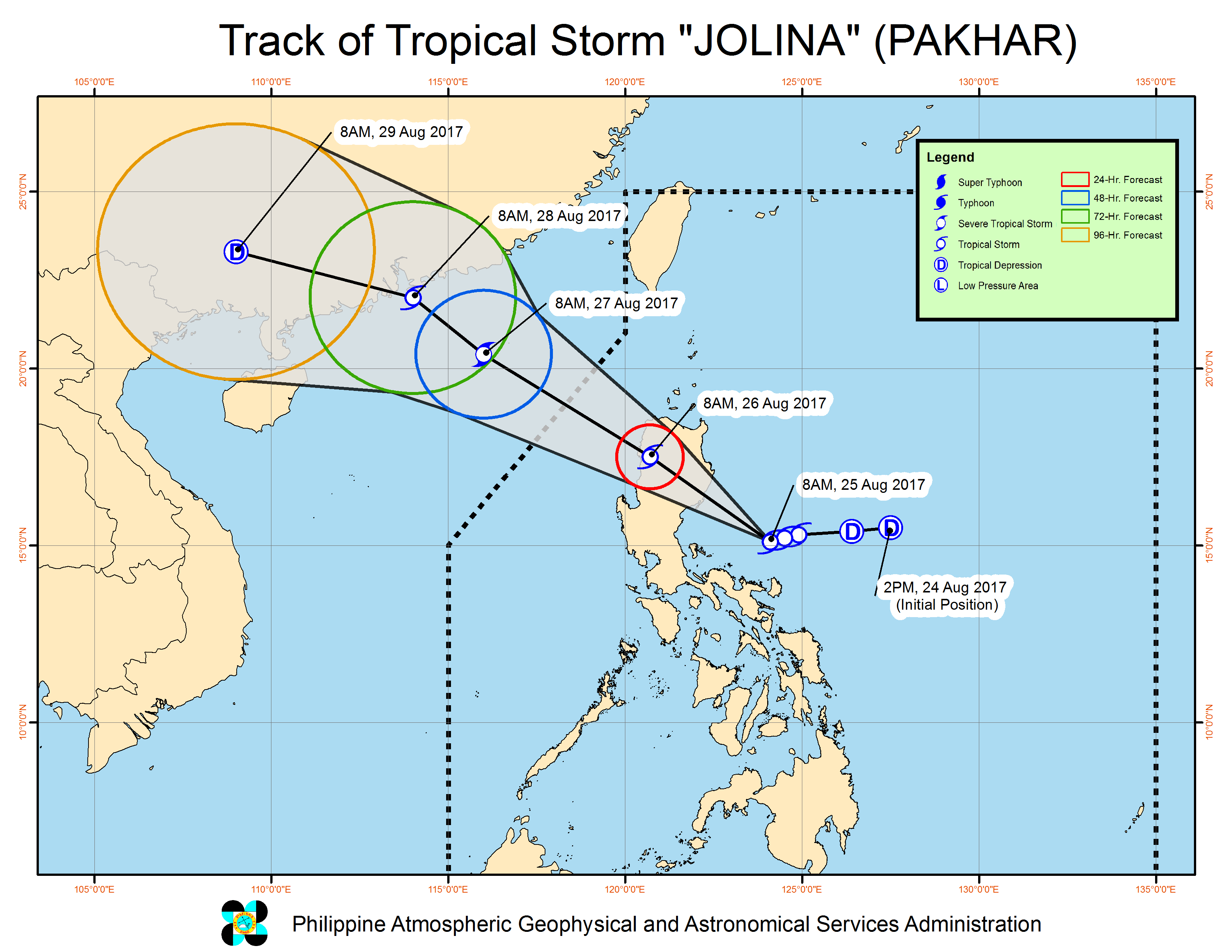 (Eagle News) — Expect heavy rains in the eastern coast of Central and Northern Luzon on Friday night, as Tropical Storm “Jolina” (international name “Pakhar) intensified.