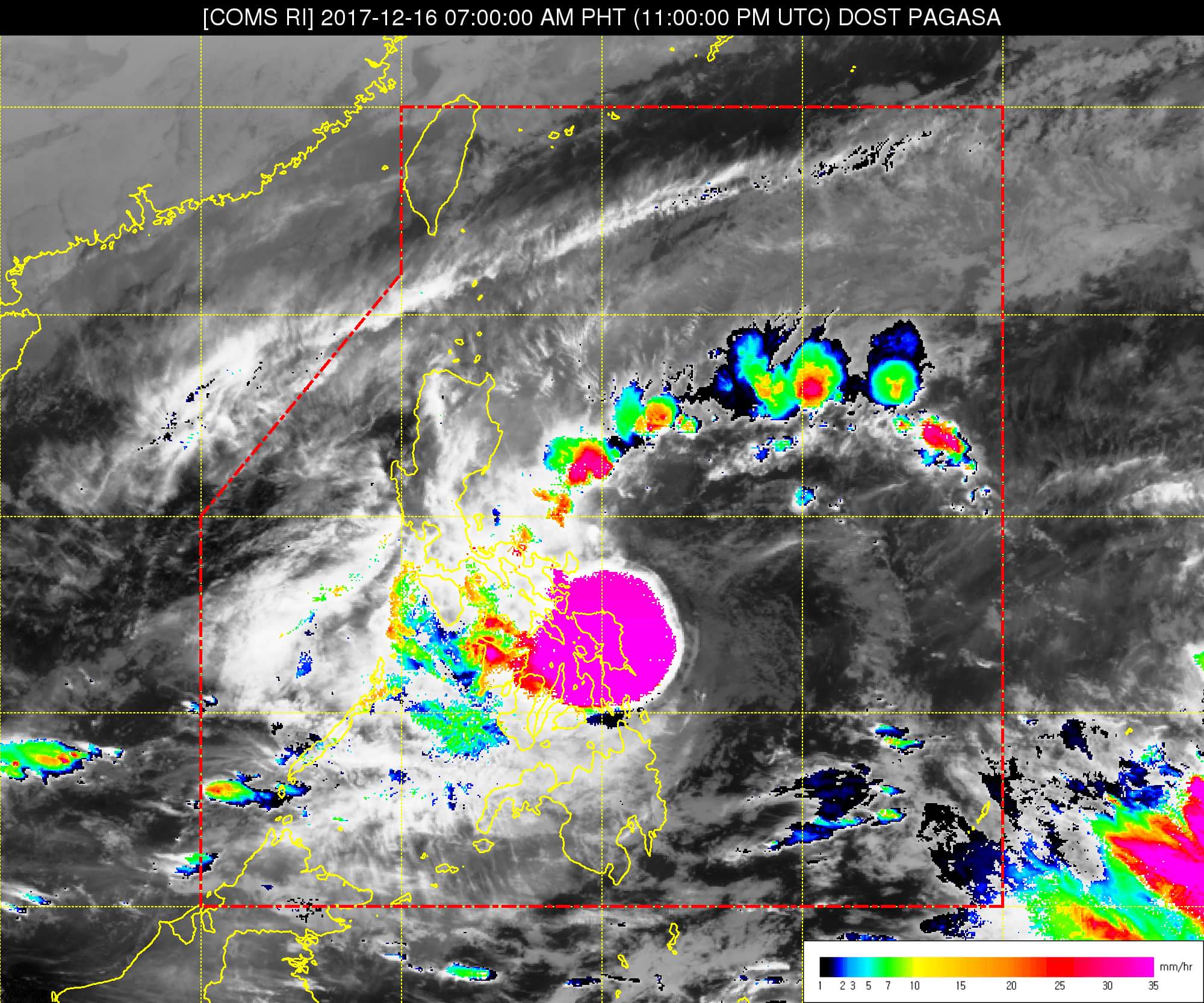 The Philippine Atmospheric Geophysical Astronomical Services Administration said as of 7 a.m., the center of the tropical storm was estimated at 125 kilometers east northeast of Borongan City, Eastern Samar.
