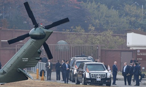 Trump’s helicopter Marine One took off from Yongsan, but was forced to turn back. The group waited nearly an hour for conditions to improve, but the weather worsened instead and the trip was abandoned.