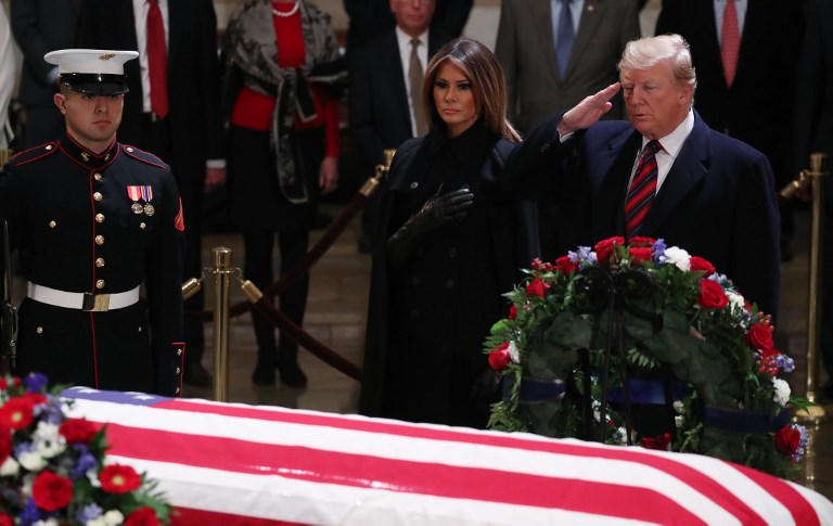 WASHINGTON, United States (AFP) — President Donald Trump and First Lady Melania paid their respects Monday to late president George H.W. Bush, whose remains lay in state in the US Capitol.