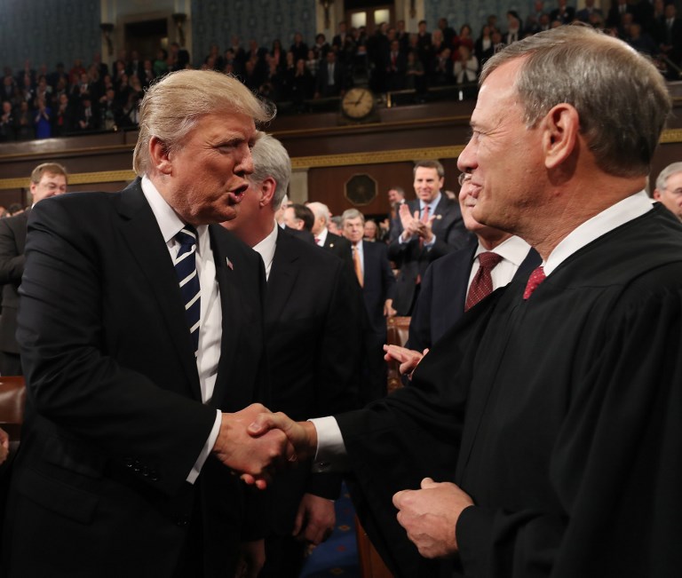 “We do not have Obama judges or Trump judges, Bush judges or Clinton judges,” Roberts said in a statement to the Associated Press. “What we have is an extraordinary group of dedicated judges doing their level best to do equal right to those appearing before them,” Roberts said. (Photo by JIM LO SCALZO / POOL / AFP)