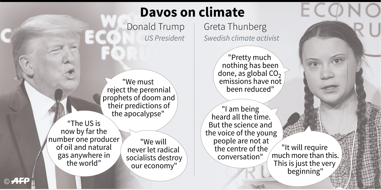 The 50th meeting of the World Economic Forum aimed for a strong focus on climate change but Trump made clear he had no time for Thunberg’s warning that “our house is still on fire.”