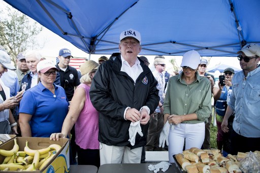 NAPLES, United States (AFP) — United States President Donald Trump viewed flood damage and handed out sandwiches to victims of Hurricane Irma in Florida on Thursday as utility workers redoubled their efforts to restore power after eight retirees died in a sweltering nursing home.